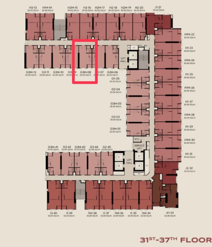 | ลักษณะห้อง | สตูดิโอ: 24.50 - 26.50 ตร.ม. 1 ห้องนอน: 30.00 - 34.50 ตร.ม. 1 ห้องนอนพลัส: 35.00 - 40.00 ตร.ม. 2 ห้องนอน: 45.00 - 59.50 ตร.ม. ดูเพล็กซ์: 30.00 - 59.50 ตร.ม. |