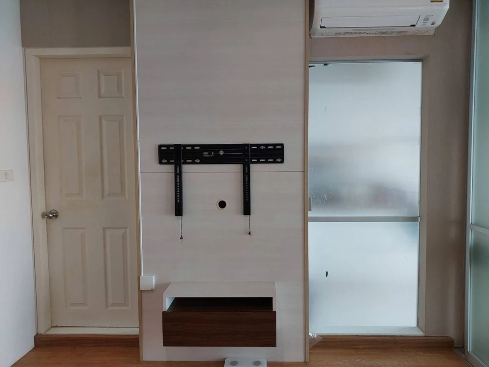 - Built in แผง TV พร้อมที่แขวน TV, ลิ้นชัก และ ชั้นวางของ ด้านข้าง